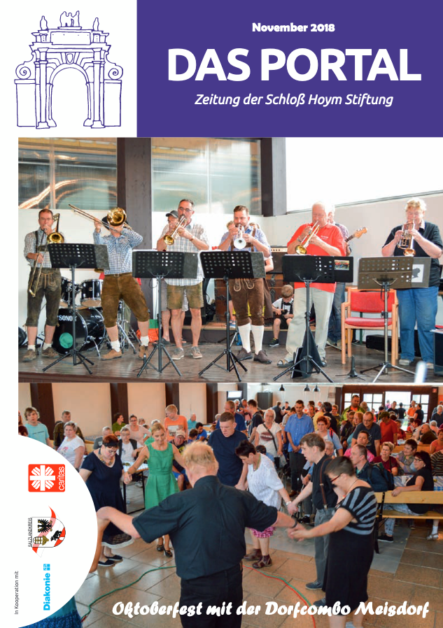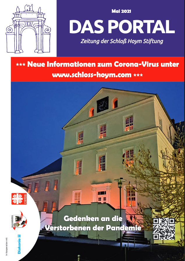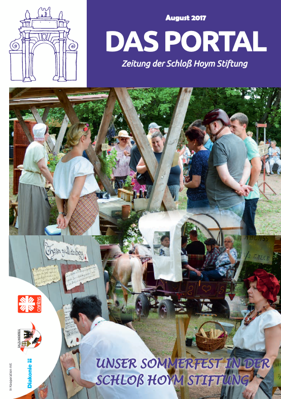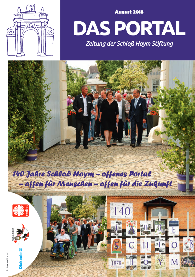 "Das Portal" ist das Magazin der Schloß Hoym Stiftung und erscheint einmal im Quartal. Unsere Zeitung berichtet über aktuelle Themen, Aktivitäten sowie Veranstaltungen der Schloß Hoym Stiftung und versorgt Sie mit Informationen über das Leben in der Schloß Hoym Stiftung.