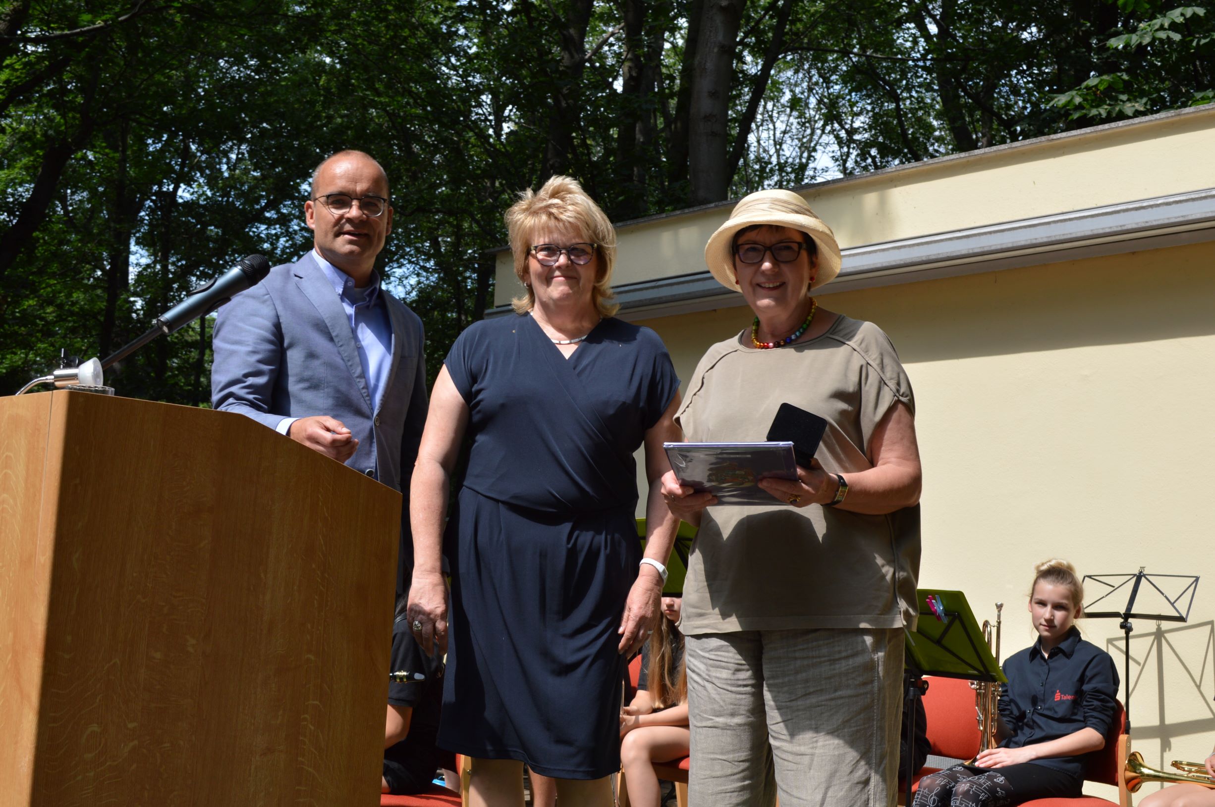 Die Vorstandsvorsitzende, Petra Czuratis, verlieh in der Veranstaltung mit der Big Band Aschersleben am 22. Juni 2019 die Ehrennadel in Silber an Dipl.-Med. Martina Unger.