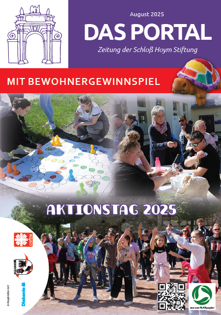 "Das Portal" ist das Magazin der Schloß Hoym Stiftung und erscheint einmal im Quartal. Unsere Zeitung berichtet über aktuelle Themen, Aktivitäten sowie Veranstaltungen der Schloß Hoym Stiftung und versorgt Sie mit Informationen über das Leben in der Schloß Hoym Stiftung.